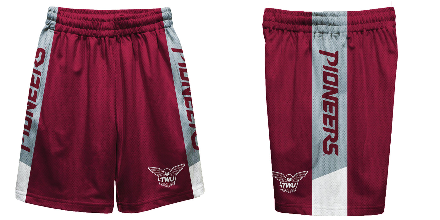 Texas Womans Pioneers Vive La Fete Game Day Maroon Stripes Boys Solid Gray Athletic Mesh Short