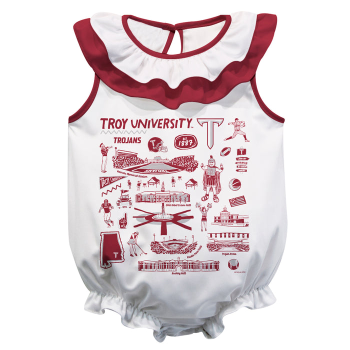Troy Trojans White Hand Sketched Vive La Fete Impressions Artwork Sleeveless Ruffle Bodysuit Bodysuit