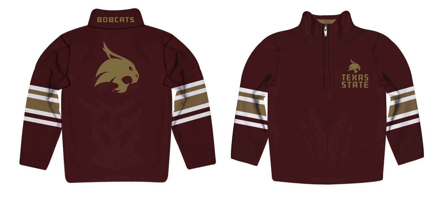 TXST Texas State Bobcats Vive La Fete Game Day Maroon Fleece Quarter Zip Pullover Stripes on Sleeves