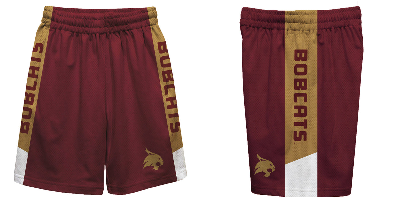 TXST Texas State Bobcats Vive La Fete Game Day Maroon Stripes Boys Solid Gold Athletic Mesh Short