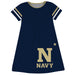 United States Naval Academy Big Logo Navy Blue Stripes Short Sleeve A Line Dress