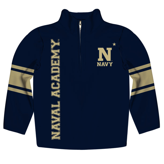 United States Naval Academy Logo Stripes Navy Blue Long Sleeve Quarter Zip Sweatshirt