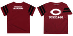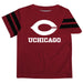 University of Chicago Maroons Vive La Fete Boys Game Day Maroon Short Sleeve Tee with Stripes on Sleeves