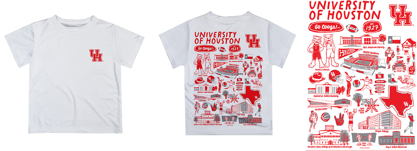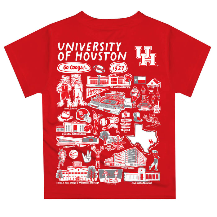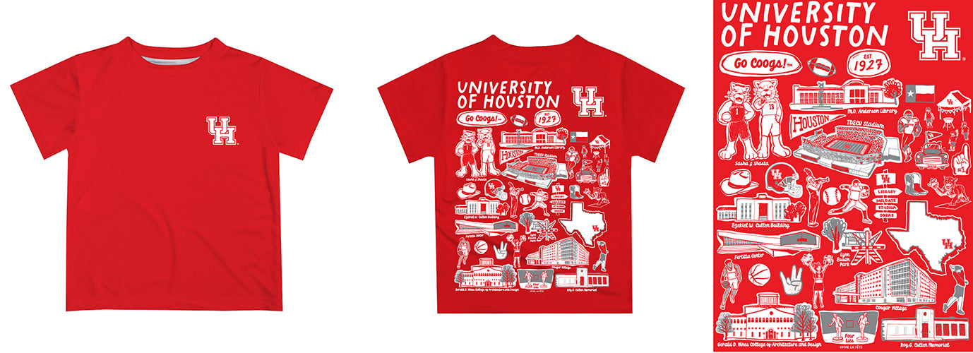 University of Houston Cougars Hand Sketched Vive La Fete Impressions Artwork Boys Red Short Sleeve Tee Shirt