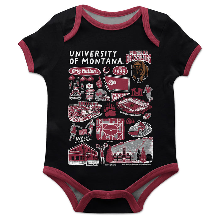 University of Montana Grizzlies Hand Sketched Vive La Fete Impressions Artwork Infant Black Short Sleeve Bodysuit Bodysuit