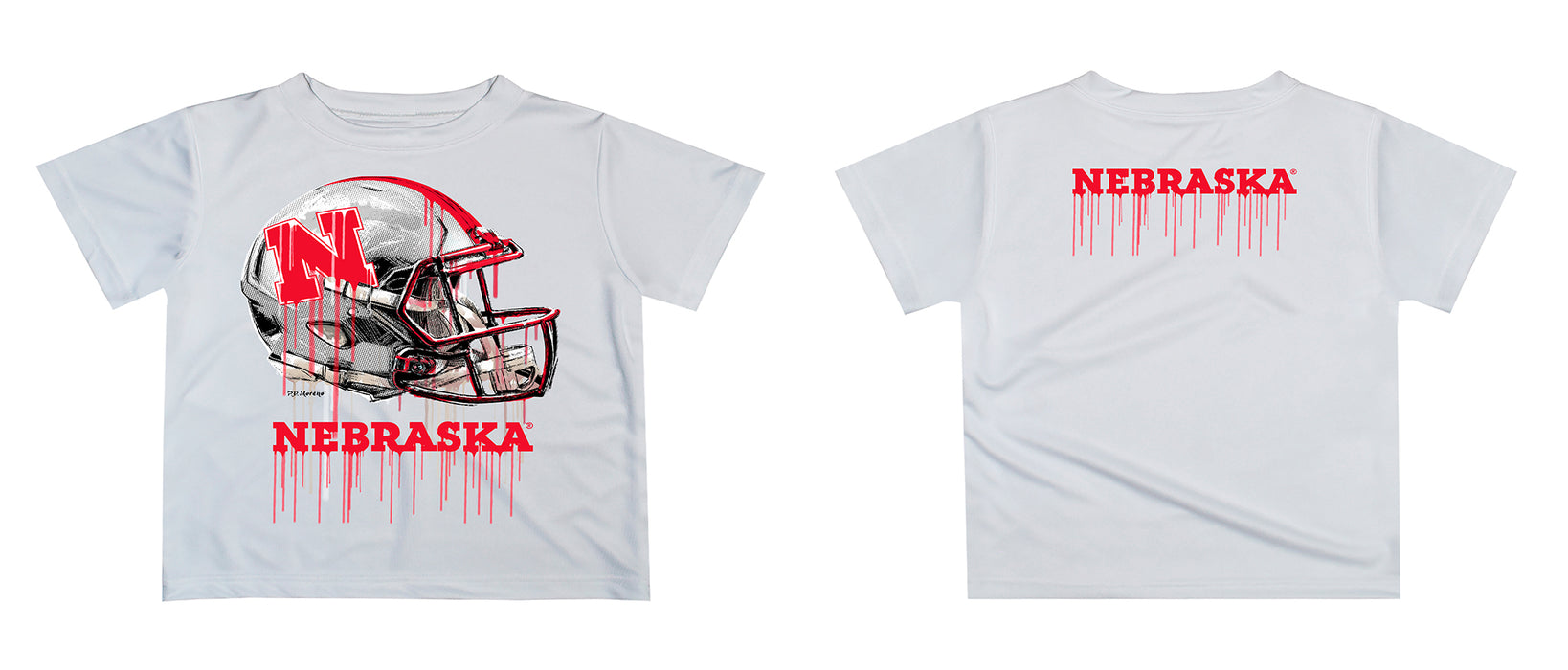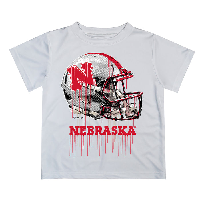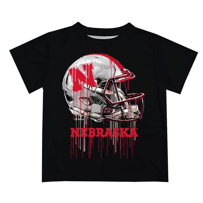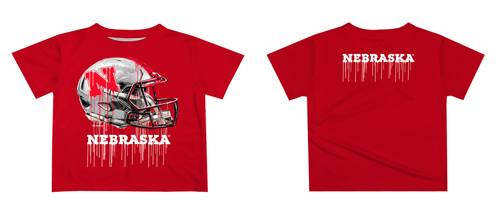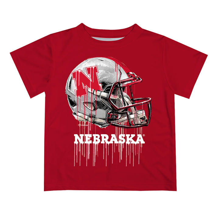 University of Nebraska Huskers Original Dripping Football Helmet T-Shirt by Vive La Fete