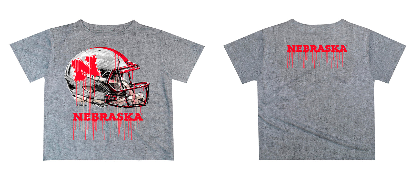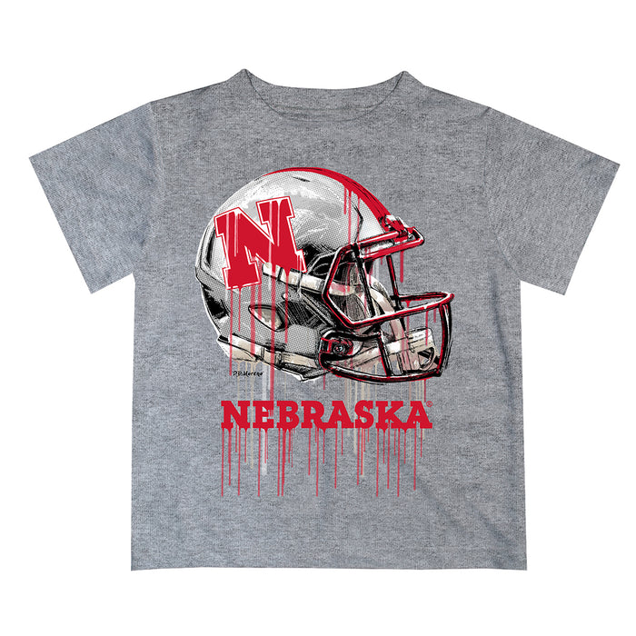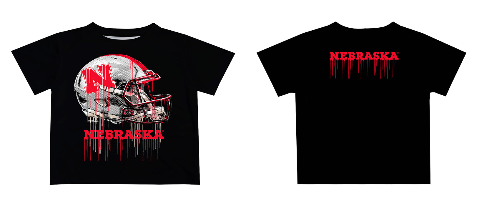 University of Nebraska Huskers Original Dripping Football Helmet T-Shirt by Vive La Fete