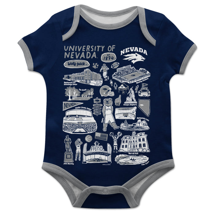 University of Nevada Reno Wolfpack Hand Sketched Vive La Fete Impressions Artwork Infant Navy Short Sleeve Bodysuit Bodysu
