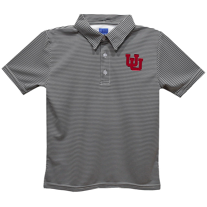 University of Utah Utes Embroidered Black Stripes Short Sleeve Polo Box Shirt