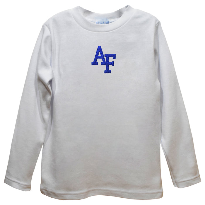 US Airforce Falcons Embroidered White Knit Long Sleeve Boys Tee Shirt