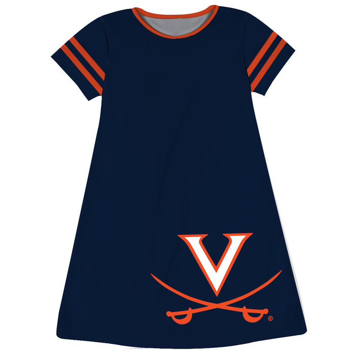 Virginia Cavaliers Big Logo Navy Stripes Short Sleeve A Line Dress