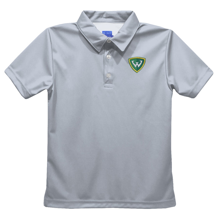 Wayne State University Warriors Embroidered Gray Short Sleeve Polo Box Shirt