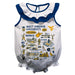 West Virginia University Mountaineers White Hand Sketched Vive La Fete Impressions Artwork Sleeveless Ruffle Bodysuit Bod