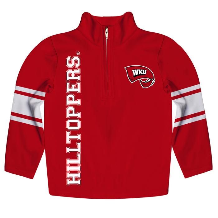 Western Kentucky Stripes Red Long Sleeve Quarter Zip Sweatshirt