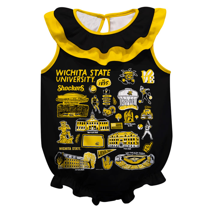 Wichita State Shockers WSU Black Hand Sketched Vive La Fete Impressions Artwork Sleeveless Ruffle Bodysuit Bodysuit