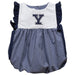 Enjoy the game and event with our Yale Bulldogs Embroidered Navy Gingham Short Sleeve Girls Bubble an Officially licensed product from Vive La Fete. Button back closure, Contrasting ruffle on angel wing sleeves and sashes on each side with elasticized legs with snaps crotch closure.