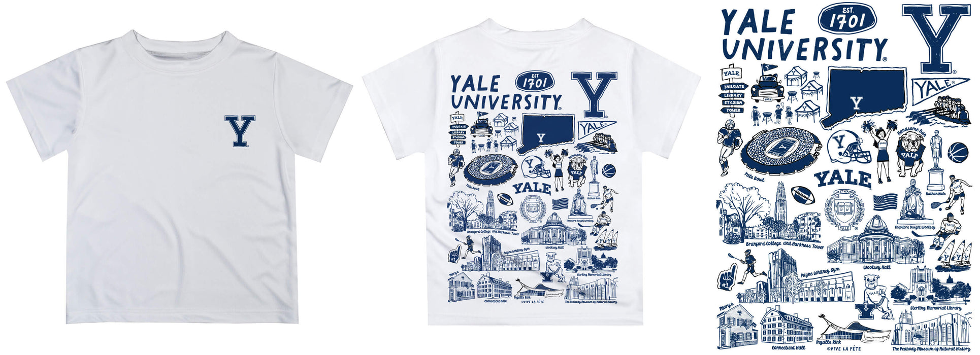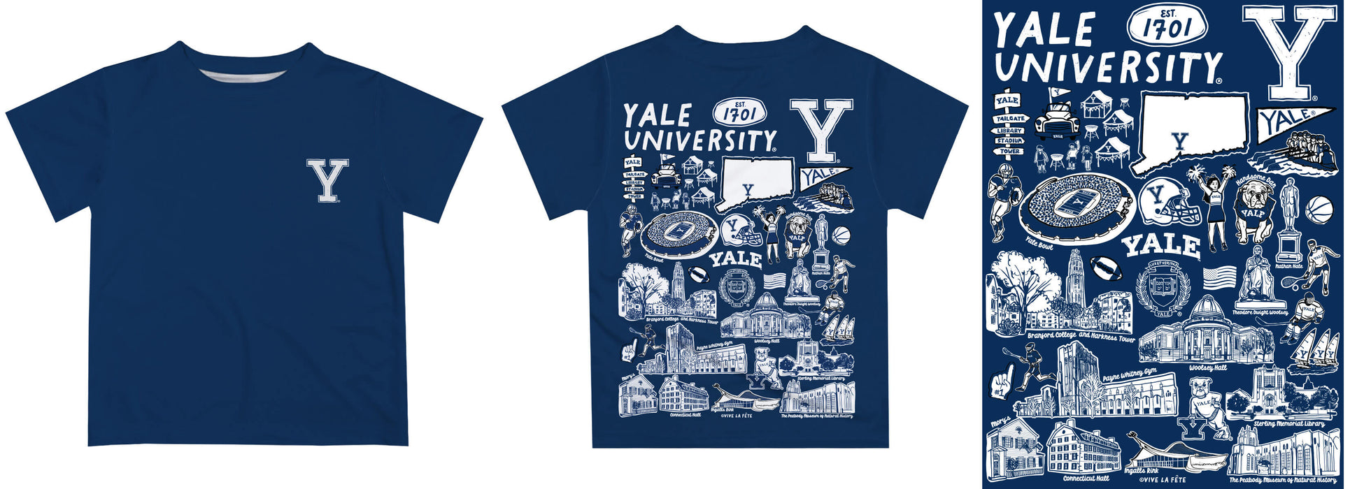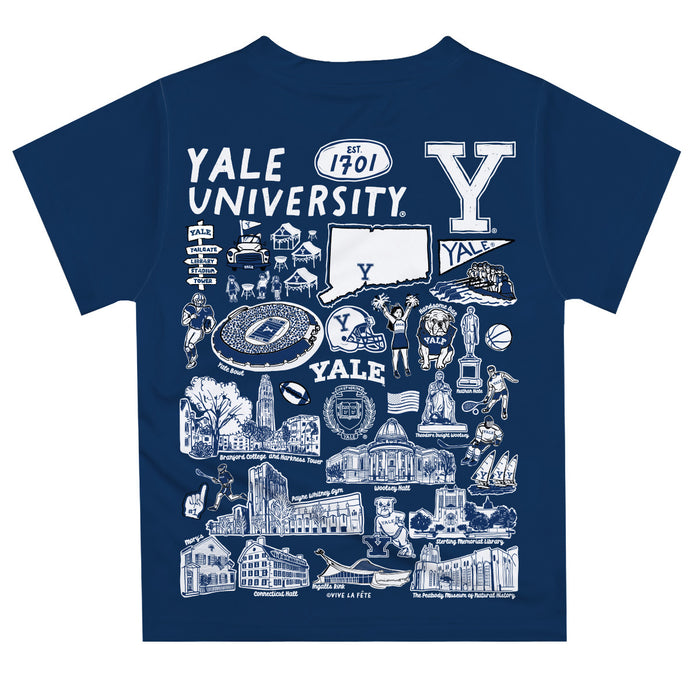 Yale University Bulldogs Hand Sketched Vive La Fete Impressions Artwork Boys Blue Short Sleeve Tee Shirt